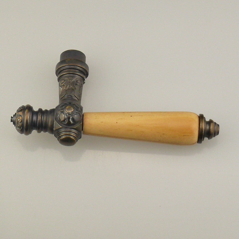 Diese schöne Gründerzeit Drückergarnitur wird in Handarbeit aus massivem Messing gegossen. Nach der Überarbeitung und dem Einbringen der technischen Details wird die Oberfläche dunkel patiniert. Weitere Oberflächenausführungen sind bestellbar - siehe Sonderleistungen.