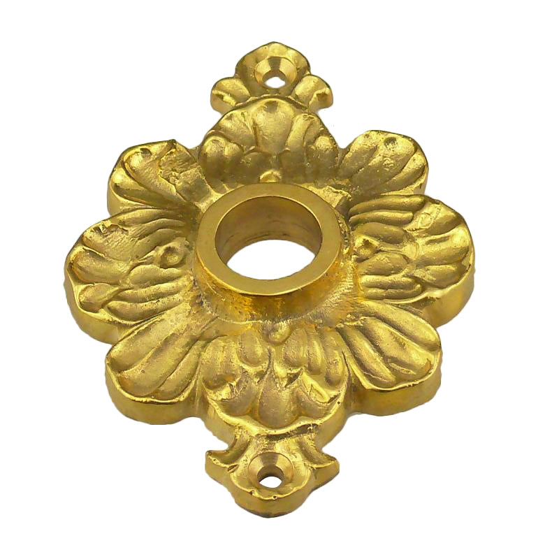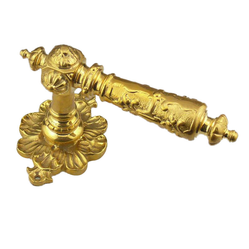 Dieser historische Haustürbeschlag wird in Handarbeit hergestellt. Zuerst wird das Gussmodell in die Sandform gedrückt, dann mit Messing ausgegossen. Die Nachbearbeitung wie Schliefen und Polieren sowie das Einbringen aller technischen Details wie Vierkantloch und Schraublochungen erfolgt im Anschluss.