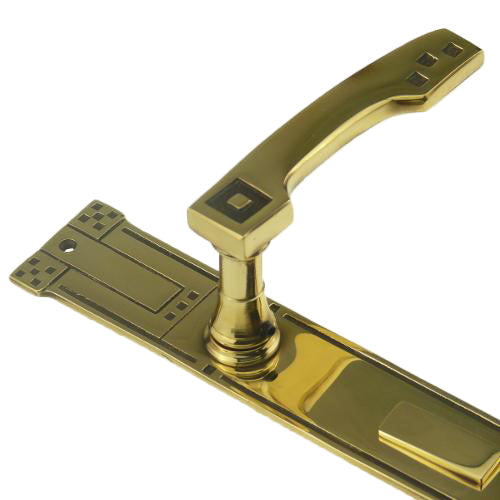 Wenn Sie die geradlinige Ausführung des Jugendstils mögen, dann ist dieser exklusive Türbeschlag vielleicht genau das Richtige für Sie. Handgefertigt im Sandgussverfahren aus massivem Messing. Sie spüren bei jedem Öffnen und Schließen Ihrer Tür die hochwertige Qualität dieser Jugendstil Garnitur.